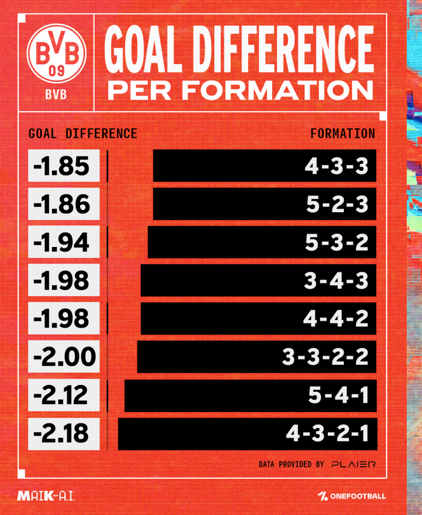 2. Wie ist die Tordifferenz bei den unterschiedlichen Formationen?